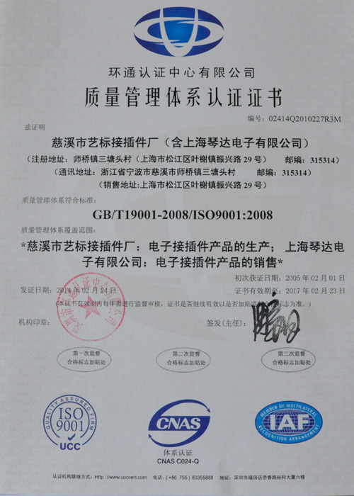 质量管理体系认证证书